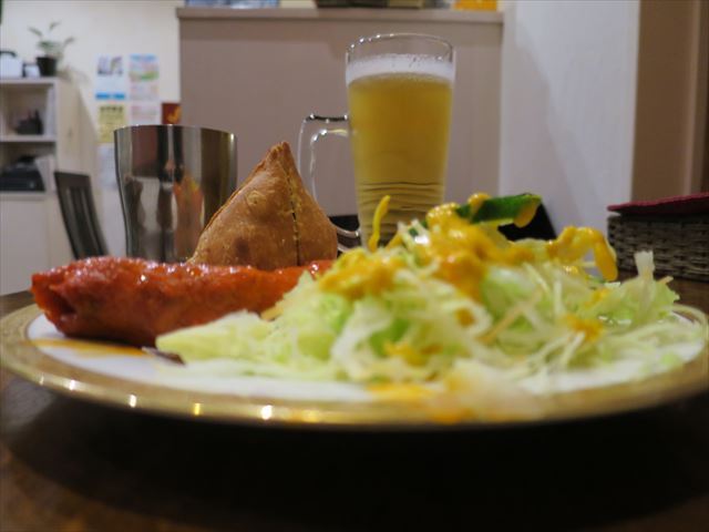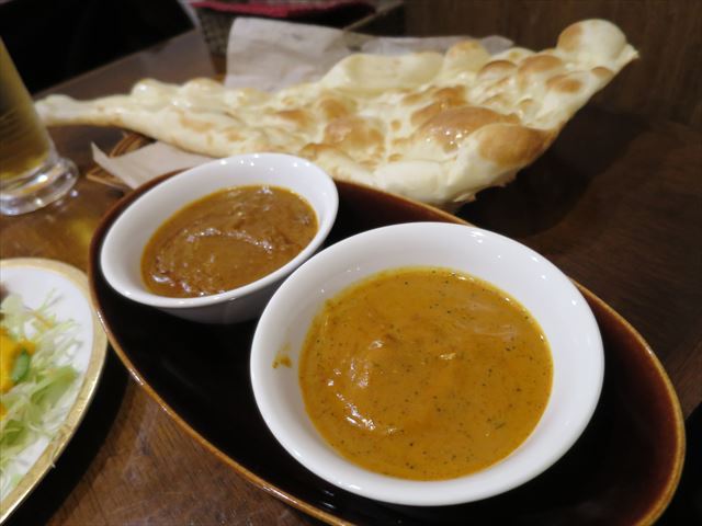 2種のカレーセットとグラスビールを注文。辛さは辛口。