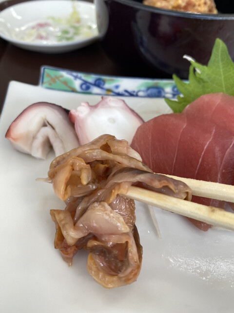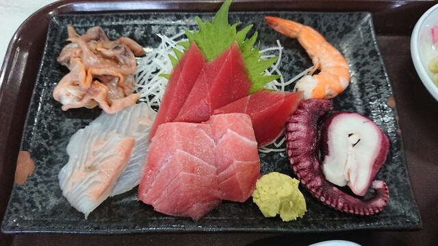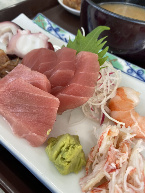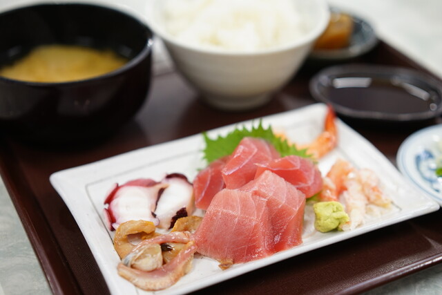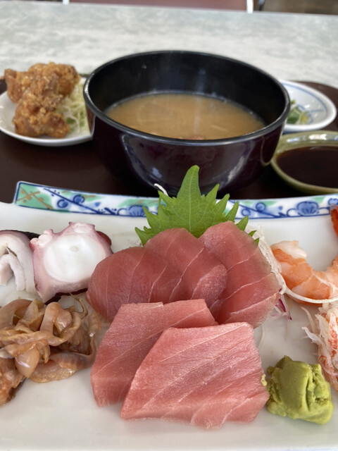 ①南部市場で取れた新鮮な魚介を提供。刺身が冷たかった(半解凍?)。