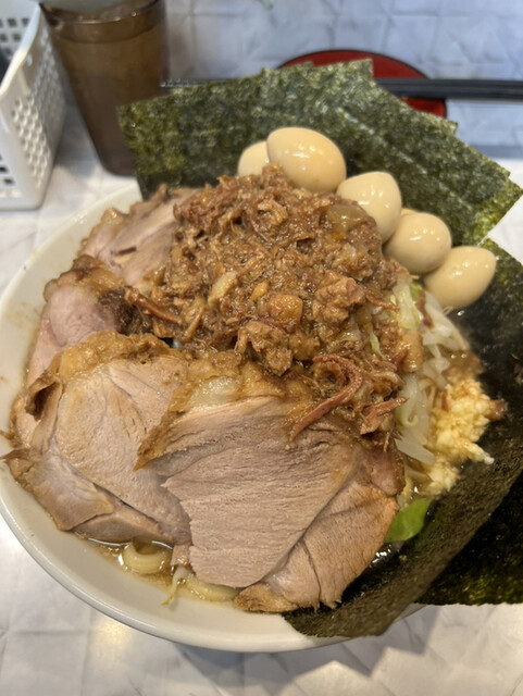 追加研究報告。野菜ちょい増しニンニク増し、脂普通。生姜トッピング。私には、野菜増しは食べきれなさそうで注文できません。これで、ちょい増です。ニンニクは増しです。これは増し増し注文... 詳細を見る