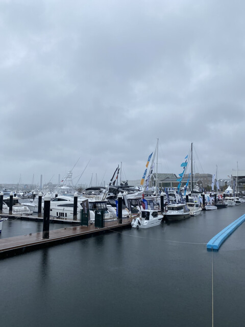 強い雨が降る土曜日、衣類を買い寸法直しが終わってお昼を迎えたベイサイドマリーナ。