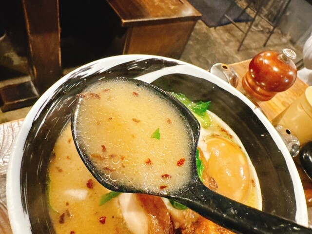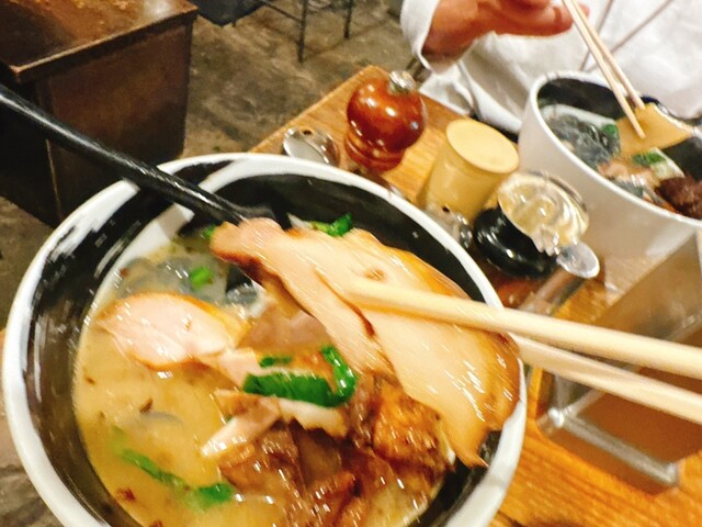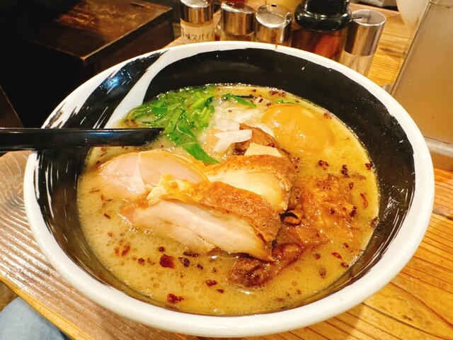 連休中だったので、学生客が少なく 待ちなしで座れました。 塩鶏そば(麺大盛り)、期間限定の牡蠣そばを注文。 牡蠣そばは、麺大盛り不可でした。残念。 塩鶏そばが先に到着。 裏切らない美味しさ。 続いて牡蠣そば到着。 スープには撹拌された牡蠣が。 濃厚でクリーミー。 ツルツ... 詳細を見る