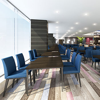 シェフが出来立てをご提供するライブキッチンを備え、シェフ自慢の料理の数々を多種多様のパフォーマンスとともにおたのしみいただけます。 【パフォーマンス例 ・国産牛のローストビーフ ・寿司職人が握るお寿司カウンター ・デザートパフォーマンスなど】バラエティ豊かなメニューをご用意してお待ちしております。 店内はカジュアルでありながらホテルらしい上質な空間を演出!