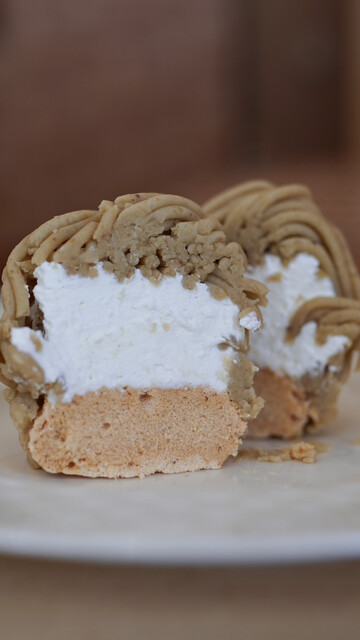 約1年ぶりに再訪。 異国感のあるマンション郡の中にあるこちらのお店。 お目当ては、賞味期限2時間のしぼりたてのモンブラン。 本日は栗と落花生の2種類のモンブランがあり、その他ショーケースの中のケーキもチョイスして店内のカフェスペースで食べることが出来ます。 去年は栗を注文したので、今... 詳細を見る