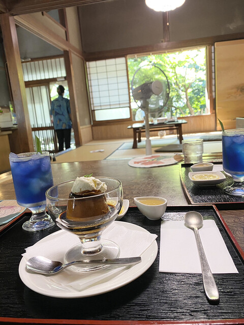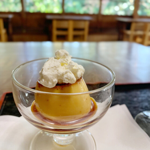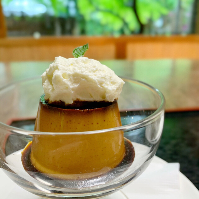 抹茶とプリン注文。