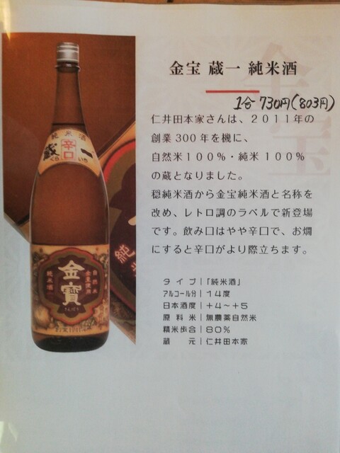 | ドリンク | 日本酒あり、焼酎あり、ワインあり、日本酒にこだわる |