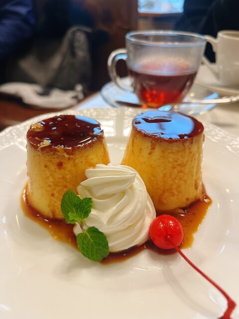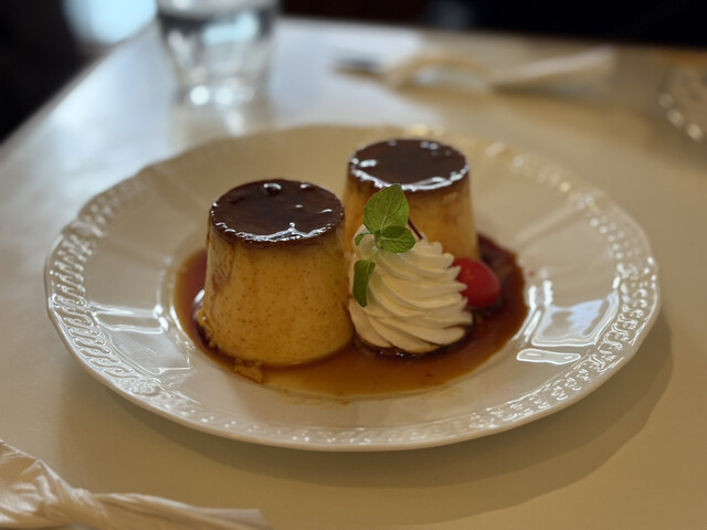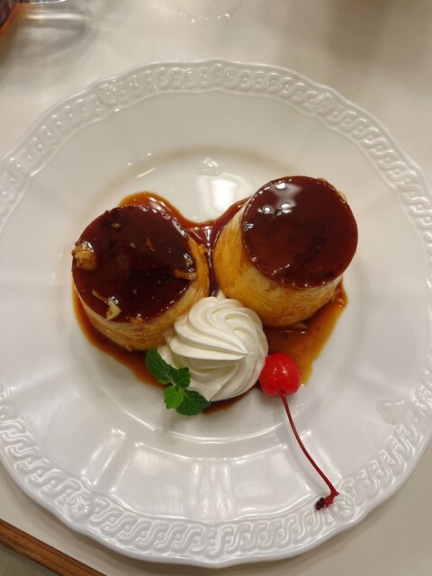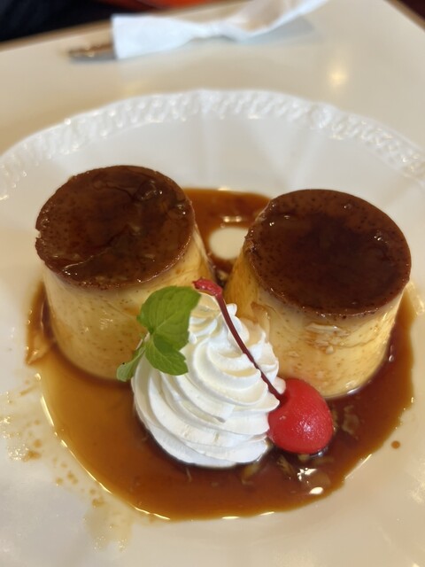プリンかホットケーキか選べなかったので両方注文、1つづつシェアしました。