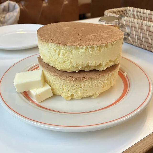 鎌倉を代表する老舗喫茶店。名物のホットケーキは、しっかりと厚みのあるクラシックスタイル。外はほんのり香ばしく、中はふんわりとした食感で、素朴ながらもどこか懐かしさを感じる味わいです。バターとシロップを...