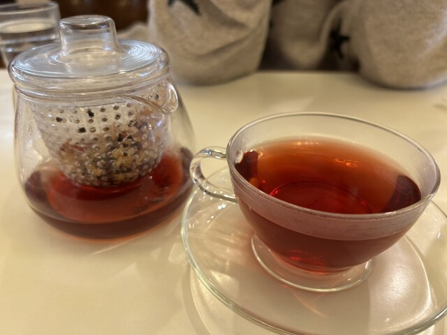 平日の15時頃で4番待ち。15分ほどで案内されたのは、なんと中庭に面したサンルーム席!この特等席で過ごせる幸運に感謝しつつ、定番のセットを注文しました。