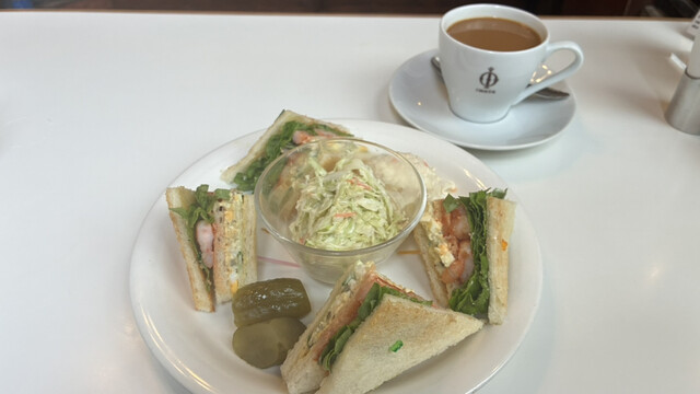 サンドウィッチはお野菜も海老もしっかり入っていて、満足感あります!良い意味で想像通りの安定の美味しさ♫