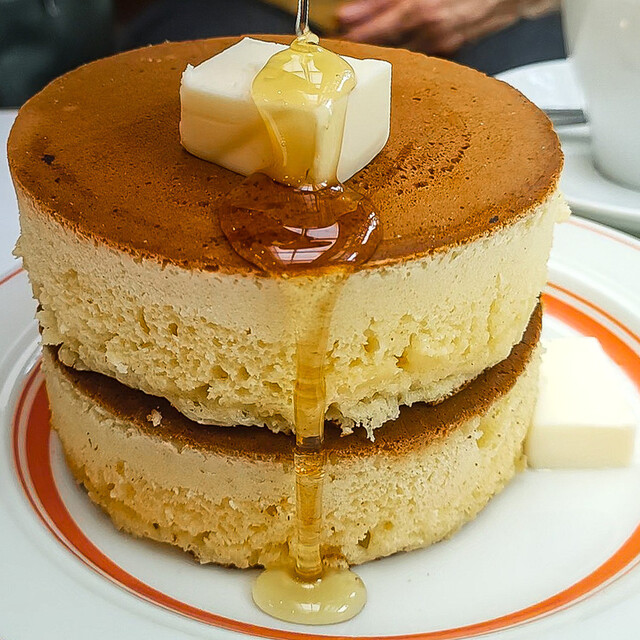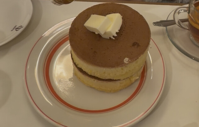 厚いホットケーキ画像に釘付け!是非とも頂いてみたいわ!