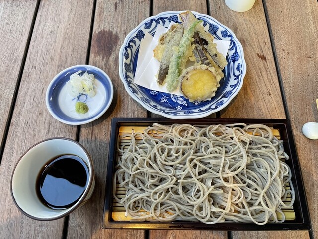 胡麻そばがとても美味しかった!旬の野菜天ぷらはどれもサクサクで、食べ応えがあった。