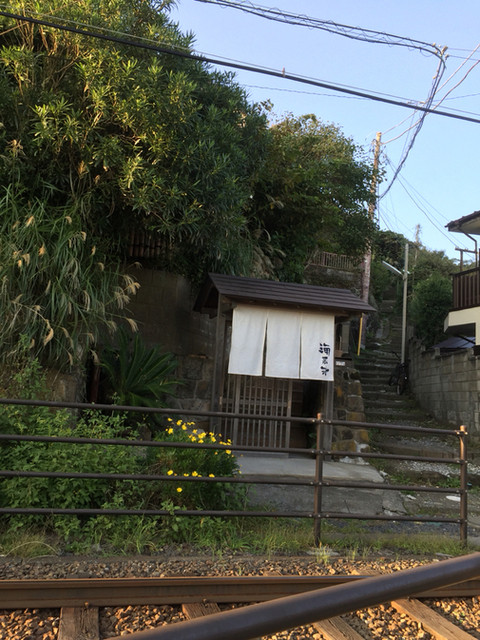 踏切でも何でもない場所で江ノ電の線路をわたってすぐにあるこの店は、某女子大創始者の別荘だったらしい。