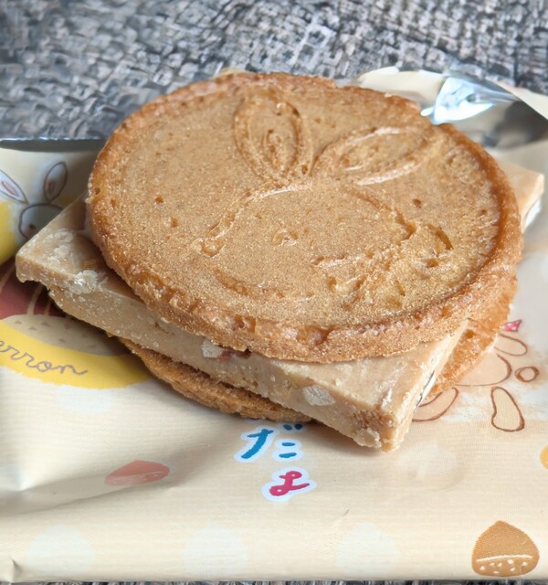 小さな箱に3つ入っていて香ばしい薄焼きのゴーフレットに板状