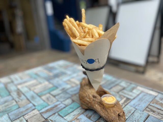 七里ガ浜の海沿いに面したpotatisはフレンチフライ(600円~)とシェイク(500円~)の専門店です。 フレンチフライはスティック、ウエッジ、ミニの3種類からお好みのディップ(明太マヨ、アボカド、チェダーチーズetc計10種類~)をお選び下さい!! シェイクは濃厚なバニラベースにお好みのフレーバー(エスプレッソ、キャラメルバナナ、マンゴーパイナップルetc計16種類~)お好きな組み合わせで!