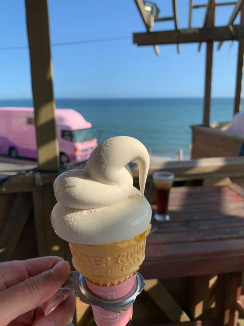 鎌倉七里ヶ浜店にあるハワイアンなハンバーガーショップ。味は普通に美味しいが、それよりも特筆すべきはテラス席から眼前に広がる七里ヶ浜の海の眺望が最高。