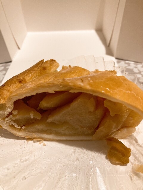 冷蔵品なら買えないけど、ひとくちアップルパイは、いわゆるクッキーということで、常温で日持ちもするということ。
