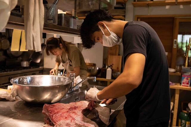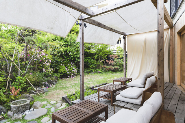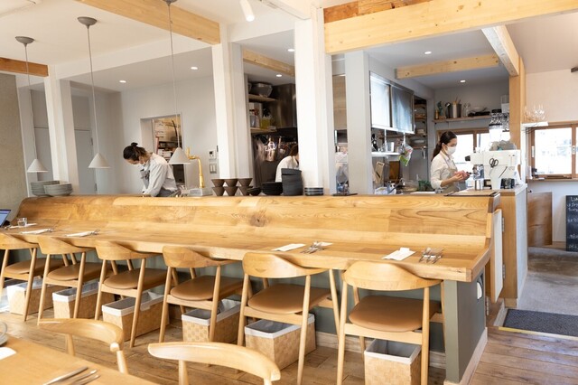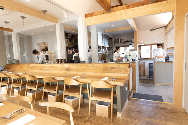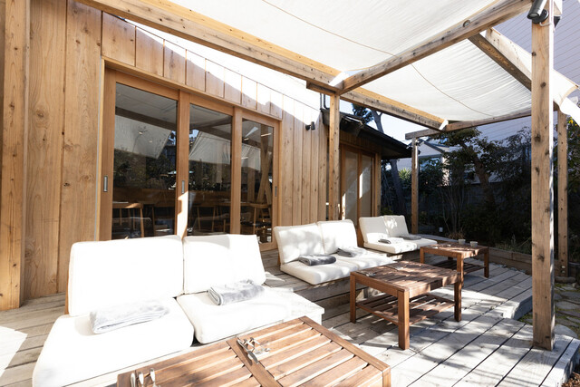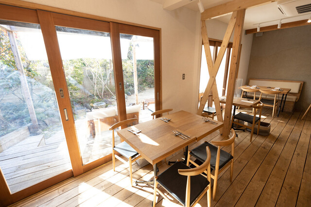 大きな一軒家をリノベーションした店舗で、江ノ電の和田塚駅近くで、線路沿いにあり店舗の窓ギリギリに電車が走り抜けていくロケーション