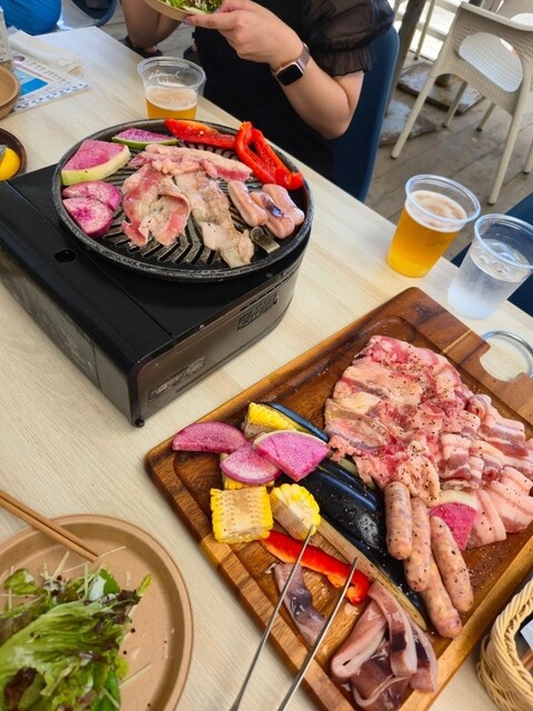 店内は落ち着いた雰囲気で、友人や家族とゆっくり過ごせます。バーベキューは香ばしくジューシーで、とても満足感があります。外の景色も楽しめ、食事とともにリラックスできる空間です おすすめします また行きdwす