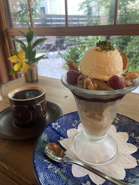 平日ランチ後に伺いました。 八幡宮から徒歩1分で非常に良いところですが、中に入り込んでいるので、観光客がふらっと入るには少し厳しそうかな。 中に入っていくと、古民家カフェが登場。 今日は良い天気なので庭で頂くことにしました。 庭までわざわざ持ってきてくれます。 ドリンクはとても美味... 詳細を見る