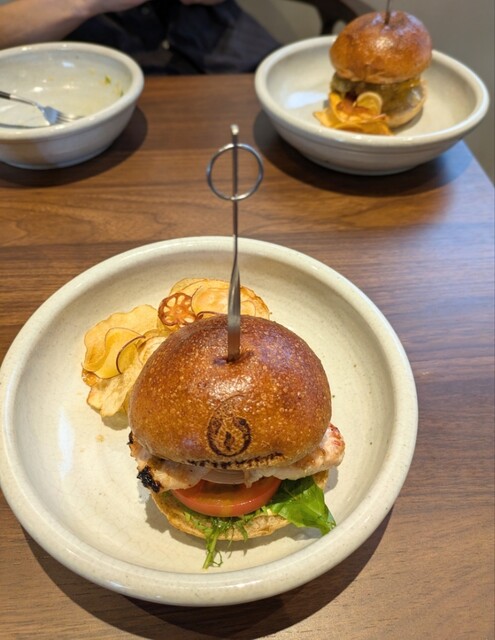 薪火で焼き上げたバーガーは一般的なバーガーとは異なり、脂がよく切れ、表面は香ばしく、食材のみずみずしさを保ちつつ、全くジャンクでない味わい、3種類のソースでご堪能ください。薪火でしか出せない柔らかな火入れ、薪が与える燻香が一番の魅力で食材の風味を効率よく凝縮させる点も優れています。バーガーはテイクアウト可能。