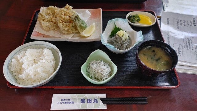 時間をかけてメニューを見ても、ここはやっぱりお刺身は外せません。お刺身定食か…、いや、今日は少し贅沢にこれっ!池田丸御膳!!