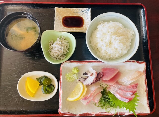 腰越駅からほど近く、国道沿いにあるお店。 船宿に併設されており、食事処は2階。広々とした座敷席で、窓からは海を一望できる開放感抜群のロケーションです。 刺身定食 2,090円 しらす定食 1,760円 刺身定食は5点盛りとボリュームたっぷり。 どれも都内で味わう刺身とは一線を画す美... 詳細を見る