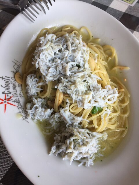 シラスのペペロンチーノはピーマンが入りたっぷりのシラスでしょっぱいかなと思いましたが塩味は抑えられニンニクが効いて美味しかったです