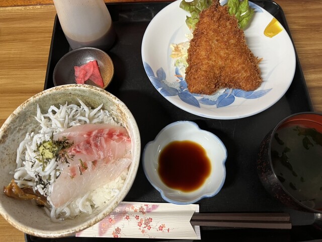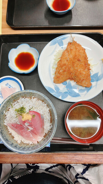 2025/9/22 江ノ島散策です 早めのランチでゑじまへ 店内ほぼ満員、横並びの3人席へ 本日のランチは アジフライかシラス天ぷら 丼は4種類 本マグロと釜あげシラス... 詳細を見る
