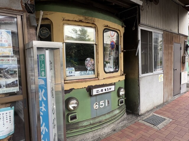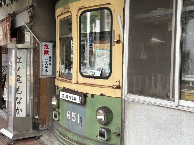 お店は江ノ電を模した形をしており、特徴的。