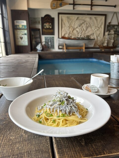 本日はシラスを食べに江の島へ! だけど禁漁期間で生シラスは食べれないので、釜揚げシラス。 お昼はシラス丼を頂きましたが、夜はイタリアンでシラスを堪能します。 こちらカフェ風のオシャレなお店で、カップルやファミリーがいたりしました。 早速注文、特製の機会で絞る正真正銘の生絞りオレンジジュースとシラスのピザとシラスのパスタ。 ブラさずにシラスで攻めます!! オレンジジュースは本当にオレ... 詳細を見る