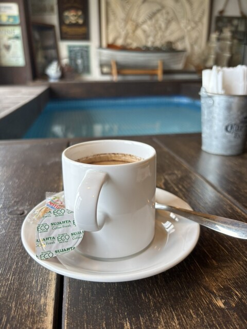 サーフボードに囲まれた海を感じられる店内。ロングサーフボードをテーブルに仕立てた席、窓際の席からは海・江ノ島が一望でき、ゆったりした時間をお過ごしいただけます。 江ノ島ならではの朝採れしらすボウル、当店自慢の江ノ島スープカレーやピッツァ、ハンバーガーなど多数ございます。スキレットで食べるアツ冷たいベーグルフレンチトーストやコーヒーなどのカフェ利用としてもどうぞ。