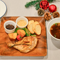 クリスマスシーズンの気分を盛り上げるこの時期だけの特別なランチセットをご用意いたしました。メインの自家製ローストチキンはマスタードソースとチャツネのソースの二種でお楽しみいただけます♪※プチデザートとドリンク付き。