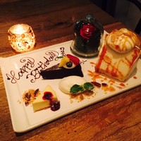 お祝いのデザートプレートは2種盛合せ¥1400〜ご用意可能です。1種追加ごとに+¥700です。(3種盛り¥2100、4種盛り¥2800、5種もり¥3500) *こちらからは席のみの予約は受け付けていません