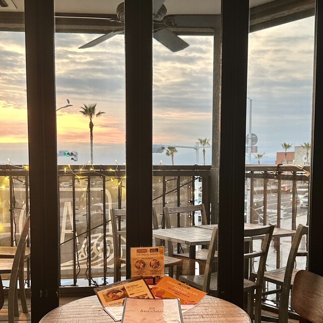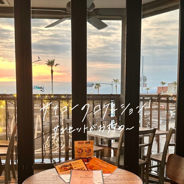 海の近くなのでアロハ〜な雰囲気が最高に味わえるのと、窓からの景色(特に2階席)が素晴らしいです!私が訪れたのは夕方だったのですが、夕暮れの景色が本当に綺麗でした