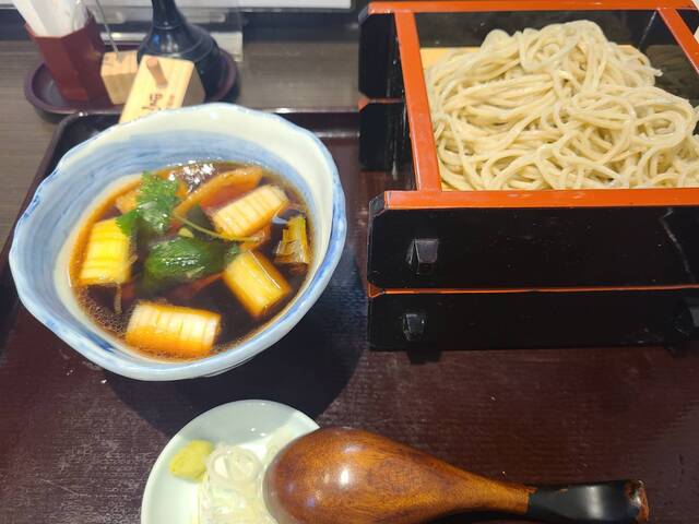 鵠沼海岸駅から徒歩12分。国産蕎麦粉100%を自家石臼で挽く香り高い蕎麦と、木桶仕込み醤油・昆布・鰹節を合わせた旨み深い出汁が自慢です。揚げたて天ぷらの「天せいろ」や焼きたて鴨ロースの「鴨せいろ」も人気。海帰りにも心地よい湘南らしい空間で、挽きたて・打ちたて・茹でたての一杯をどうぞ。