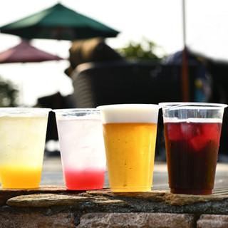 弁天橋(江の島大橋)を渡り、すぐ右手に見えるテラスが当店です。湘南の海を一望しながら、ビール片手に楽しいひとときを過ごしませんか?晴れた日は富士山や夕景、夜は美しい夜景と、さまざまな江ノ島・湘南の景色と出会えます。おすすめメニューは2,500円の飲み放題!生ビール『プレミアムモルツ』やセルフで作るオリジナルカクテルを楽しんで♪ビアテラスの奥には絶景ポイントも。詳しい場所はスタッフにお尋ねください。