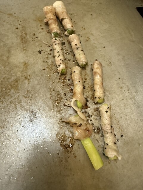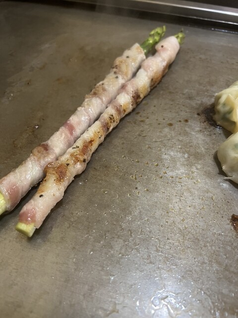 再訪です。 半年ぶりに夕食に伺いました。 お好み焼き大好物です。 注文したのは 太バラ巻き、豚バラ肉のアスパラ巻きです。 2本で650円。 丸々しい椎茸のホイル包み75... 詳細を見る