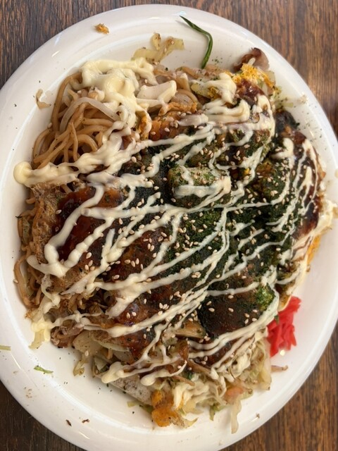 今回は焼きうどんとスペシャルお好み焼き(海鮮とかたくさん入ったやつ)をいただきました!