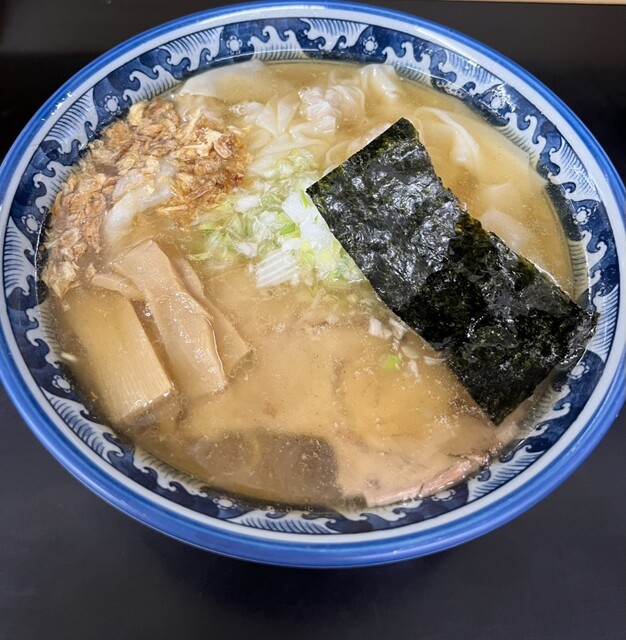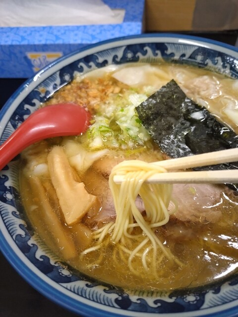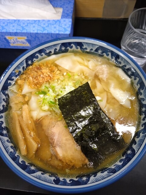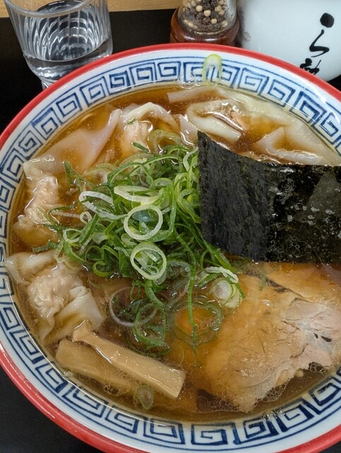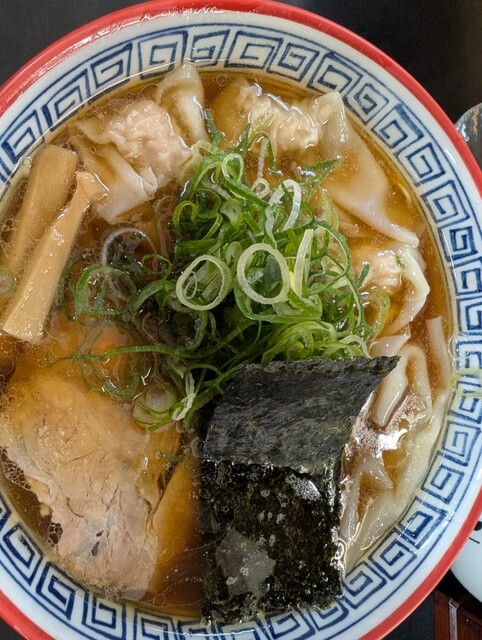 をいただきました。大きな薄いチャーシューが入っています。ネギもたっぷりで嬉しいですね。ワンタンは、しっかりと味が付いていて、生...