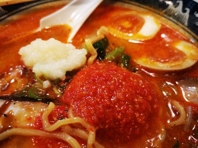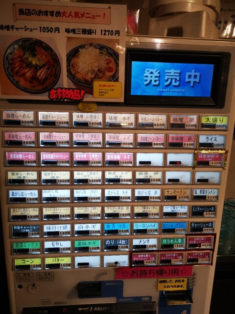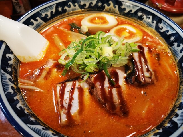 入ってすぐ左にある券売機で選んだのは、激辛味噌チャーシュー(1.130円)をポチリしてカウンター席手前側に着席後に女将さんに食券を渡した後に、ホットペッパーのトッピング一品無料クーポンを掲示して、味つけ卵をお願いして着丼を待ちました。