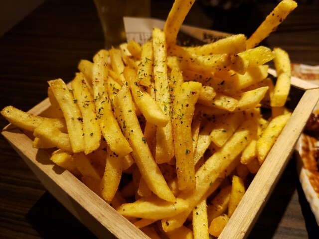 マキシマムのポテトフライ、炭焼き鶏など。