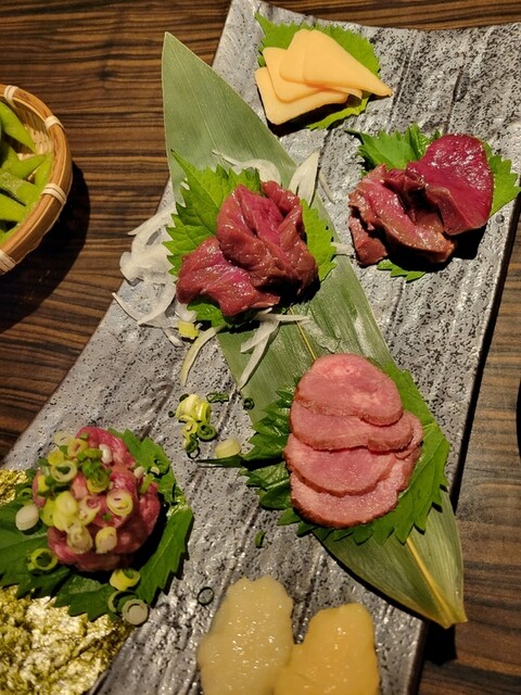 明太子玉子焼き、馬刺し、からしレンコン、