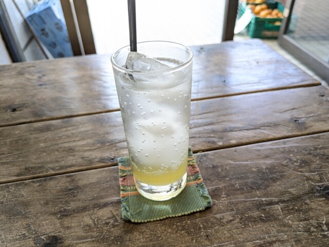 お弁当の出来上がりまで、自家製みかんシロップソーダを頂きました。