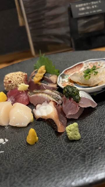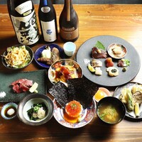 当店の自慢は、一年中ご注文いただける幻の魚「のどぐろ」と旬の「牡蠣」。市場から直接仕入れた鮮度抜群の海の幸や、A4ランク黒毛和牛のカイノミステーキなどもお楽しみいただけます。また、豊富な日本酒の品揃えと、それに合うお料理も魅力。お一人様ずつ小皿でご提供するボリュームたっぷりの多彩なコースは接待にも最適です。心地よい照明に照らされたシックな空間で、思い出に残る特別なひとときをお過ごしください。