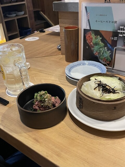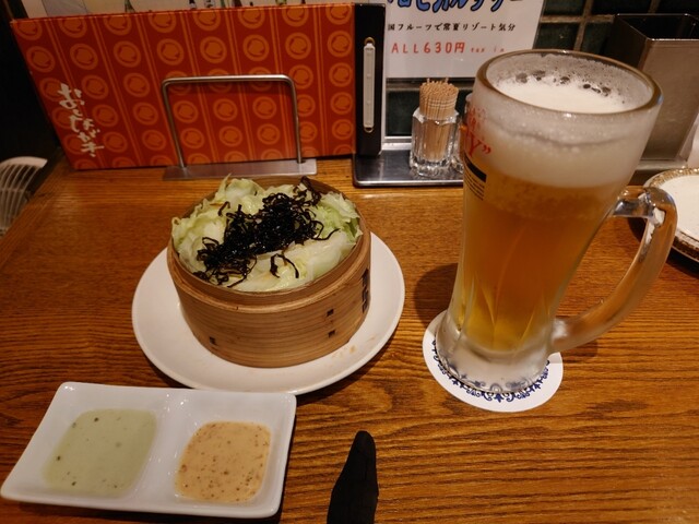 お代わり無料のキャベツのせいろ蒸しとボリューム満点の牛すじ塩煮込みで満足(〃^▽^〃)