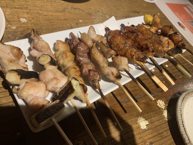 写真にもあるように前から気になっていた串物や、毎回注文するねぎまや皮、初などをすべてたれ塩一本ずつ注文して、豪遊しました。