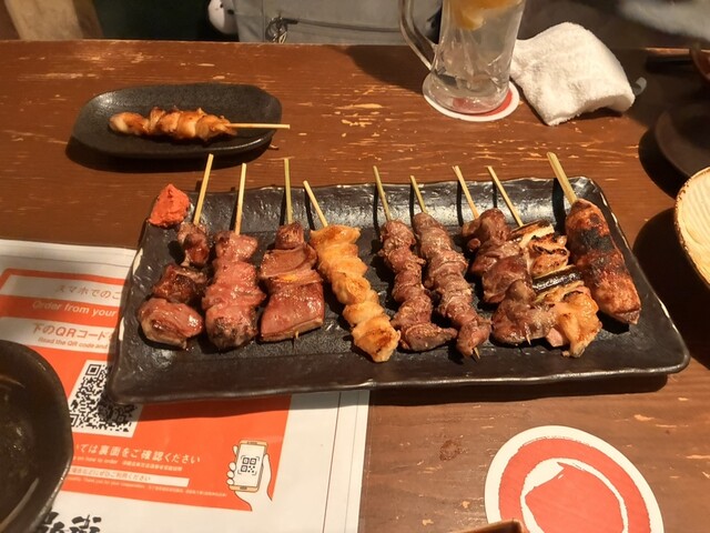 藤沢駅南口から徒歩1分の焼き鳥居酒屋に仕事帰りにふらっと来店。信州・安曇野直送の新鮮な地鶏串は備長炭で焼かれ、外は香ばしく中はジューシーでビールと相性◎。定番串の他にも季節の一品や野菜串もあり、味にメ...