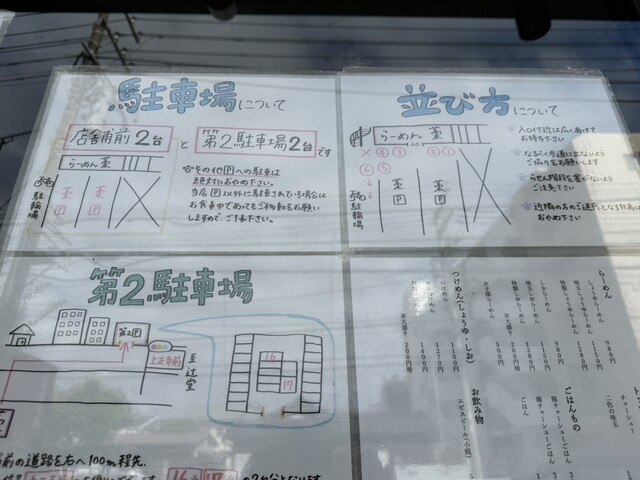 車なので12時前に行ったためか待ち無しで入れました。駐車スペースは店舗前に2台、100m程離れた場所に2台有ります。