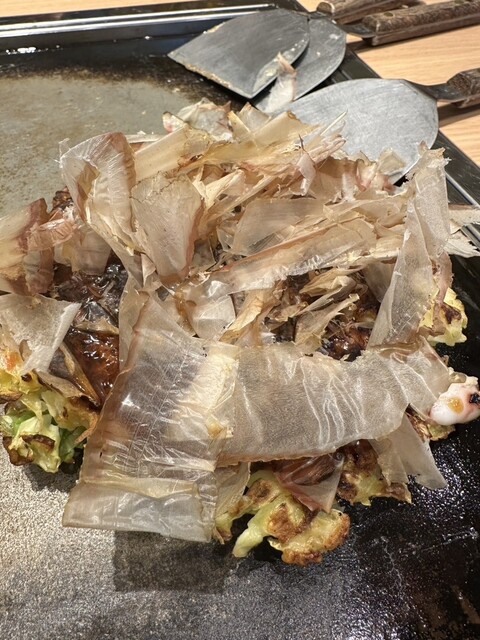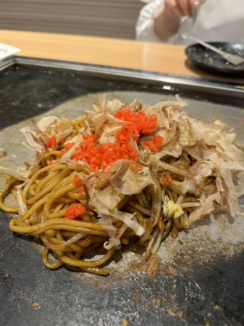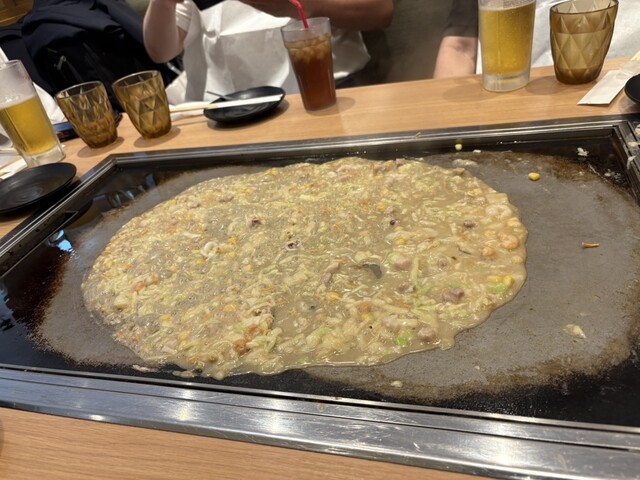 お昼時のショッピングモール、どのお店も混んでいる中で、比較的早く入店できそうだったので、消去法的に選択。もんじゃとお好み焼き、焼きそばを注文。もんじゃは席で店員さんが作ってくれて、お好み焼きと焼きそば...