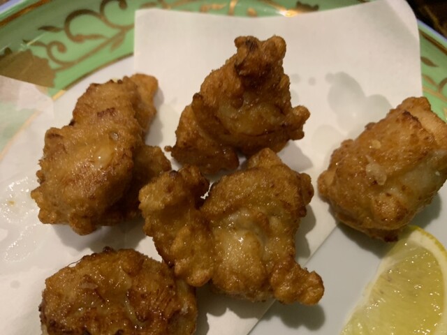まずは、ビールと790円メニューの軟骨のから揚げ、舞茸天ぷらを注文し、今日のおすすめでホワイトボードを見せていただいたので、あん肝の天ぷらとだし巻き玉子と、メガチキンカツを注文しました。